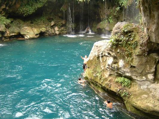 Puente de Dios.- Cenote natural hundido entre la montaña, rodeado de cascadas y cuenta con una caverna con tragaluz natural.